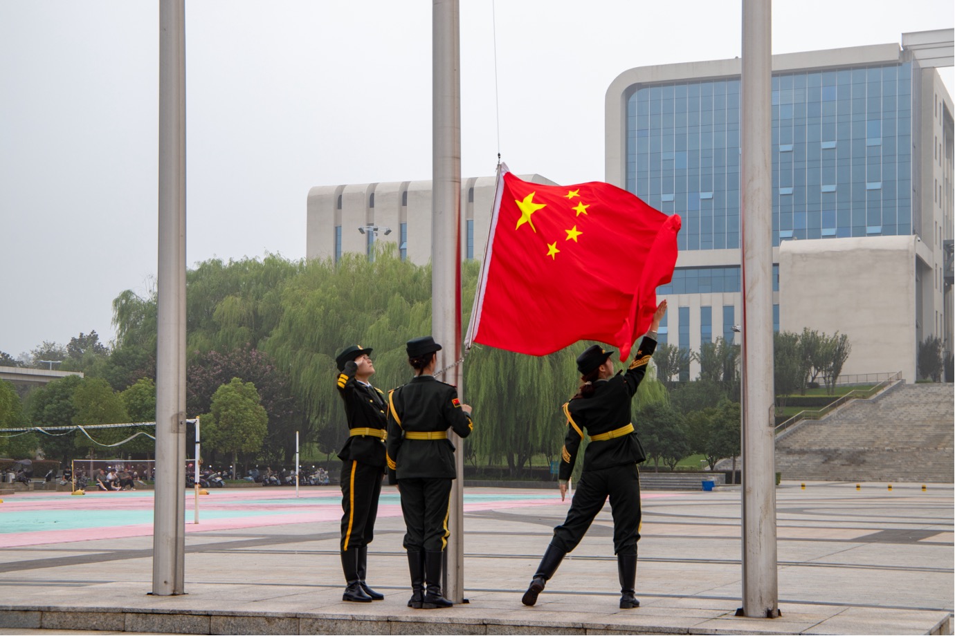 典礼在雄壮的国歌声中正式开始,国旗护卫队护送鲜艳的五星红旗正步走向旗杆,五星红旗冉冉升起,全体师生肃立行注目礼,昂扬斗志与爱国情怀在校园中激荡。