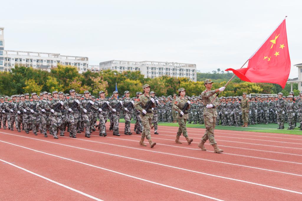 伴随着铿锵有力的步伐,由两位“九三阅兵”亲历教官带领的国旗护卫队庄严行进。国歌奏响,五星红旗迎风升起,映衬着台下整齐的迷彩方阵。全场肃立,歌声嘹亮,一股崇高的爱国情怀如潮水般涌动,为仪式献上震撼开场。