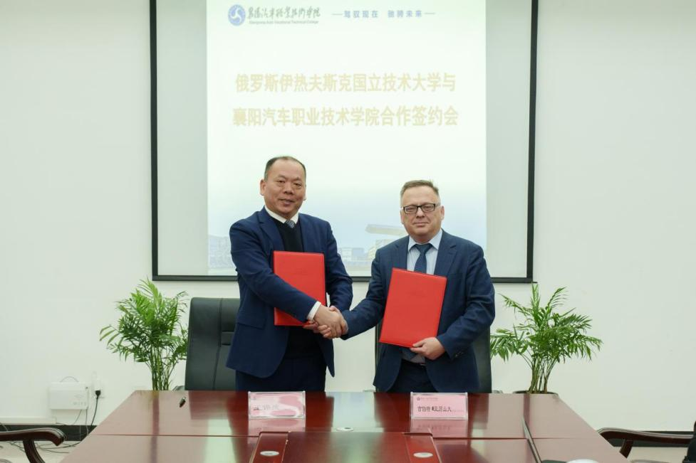座谈会最后,王保成与古伯特·亚历山大校长代表两校共同签署《襄阳汽车职业技术学院与俄罗斯伊热夫斯克国立技术大学合作备忘录》。